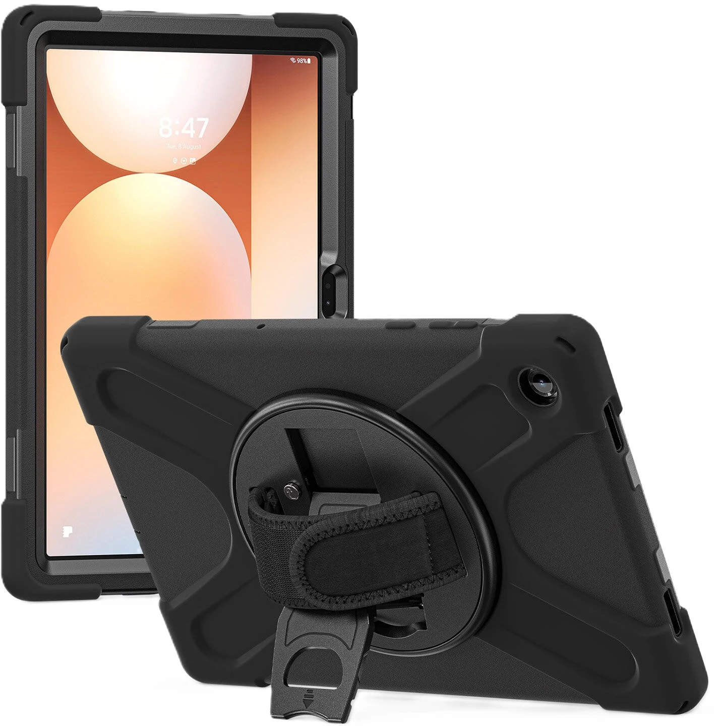 Dieses robuste Markencase ist der perfekte Begleiter in jeder Lebenslage: Egal ob auf der Baustelle, im Büro oder Freizeittouren. Der Multifunktionsgriff lässt dich dein Tablet ganz einfach im Portrait- oder Landscape-Modus aufstellen. So kannst du entspannt Videos anschauen, oder mit Familie und Freunden und freien Händen in die “Face-Time” gehen.