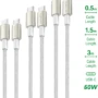 4Smarts USB-C auf USB-C Kabel PremiumCord 60W 3er Set 0,5 m + 1,5 m + 3 m Weiß / Silber
