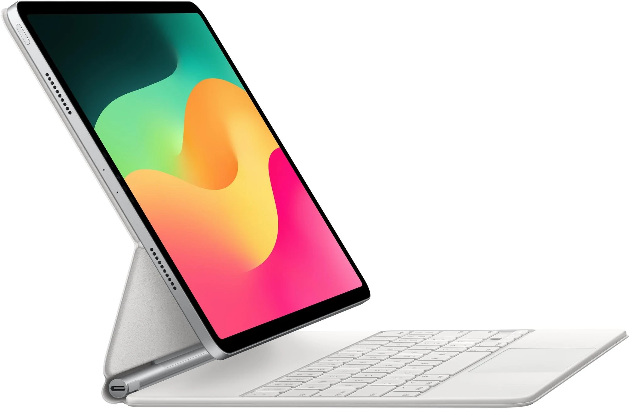 Das Magic Keyboard ist der perfekte Begleiter für das iPad Air. Es hat ein schlankes, mobiles Design und sorgt für ein angenehmes Tippen. Und du hast ein Trackpad, um ganz präzise zu arbeiten. Die Tastatur hat eine Reihe mit 14 Funktions­tasten, einen USB‑C Anschluss zum Pass‑Through Laden sowie einen Schutz für die Vorder‑ und Rückseite deines iPad. Das frei­schwebende Design lässt sich stufenlos an mehrere Betrachtungs­winkel anpassen und ein großes Trackpad aus Glas gibt dir neue Möglichkeiten, mit iPadOS zu arbeiten.