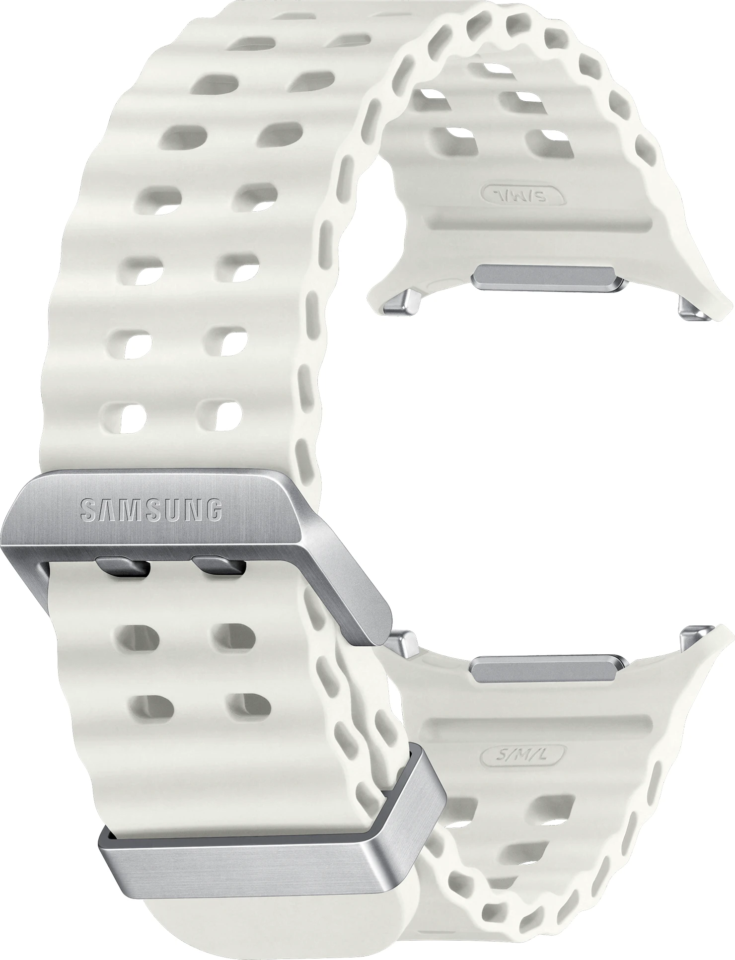 Das Marine Band für die Galaxy Watch Ultra besteht aus speziellem Nitrilkautschuk (HNBR) und eignet sich hervorragend für schweißtreibende Workouts oder im Alltag. Es ist unempfindlich gegenüber Temperaturänderungen, sowie verschleiß- und wasserbeständig. Mit Luftlöchern für zusätzliche Luftzirkulation sorgt das Marine Band für angenehmen Tragekomfort am Handgelenk, damit du Herausforderungen mit Bravour meistern kannst. Durch das Schnellwechselsystem, kannst du innerhalb von Sekunden das Band ohne weitere Hilfsmittel und mit nur einem Knopfdruck wechseln. Wähle ein Armband das zu deinem Stil passt und verleihe deiner Galaxy Watch Ultra einen persönlichen Touch.
